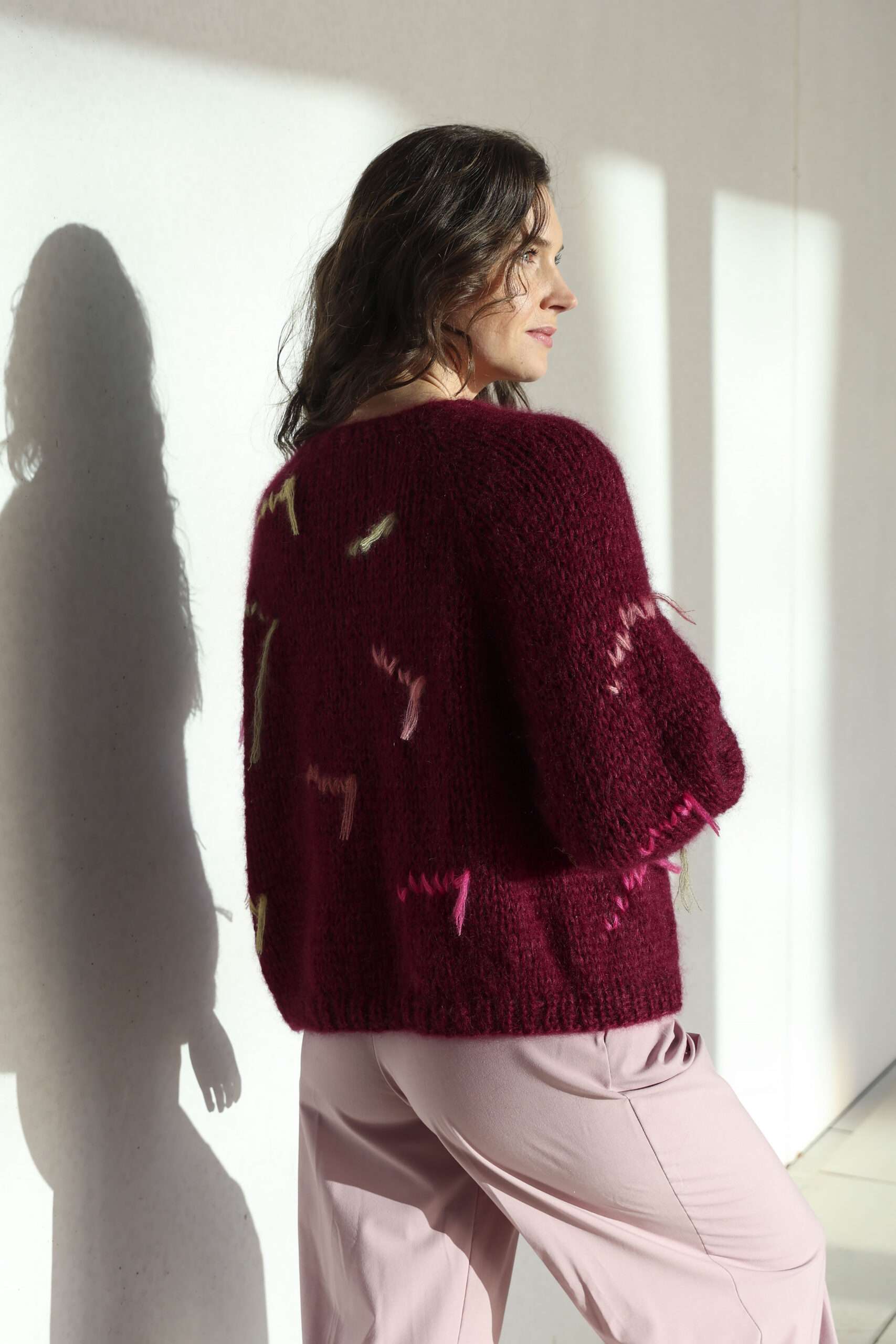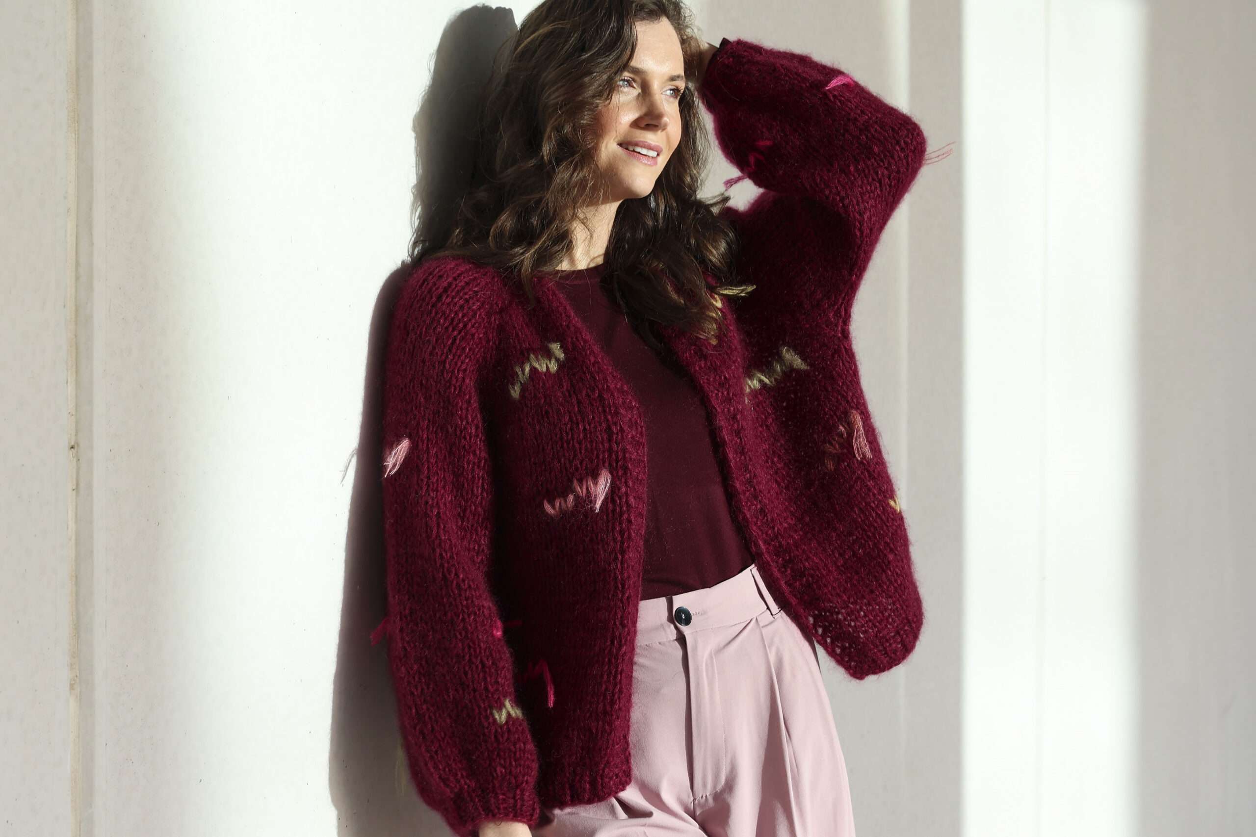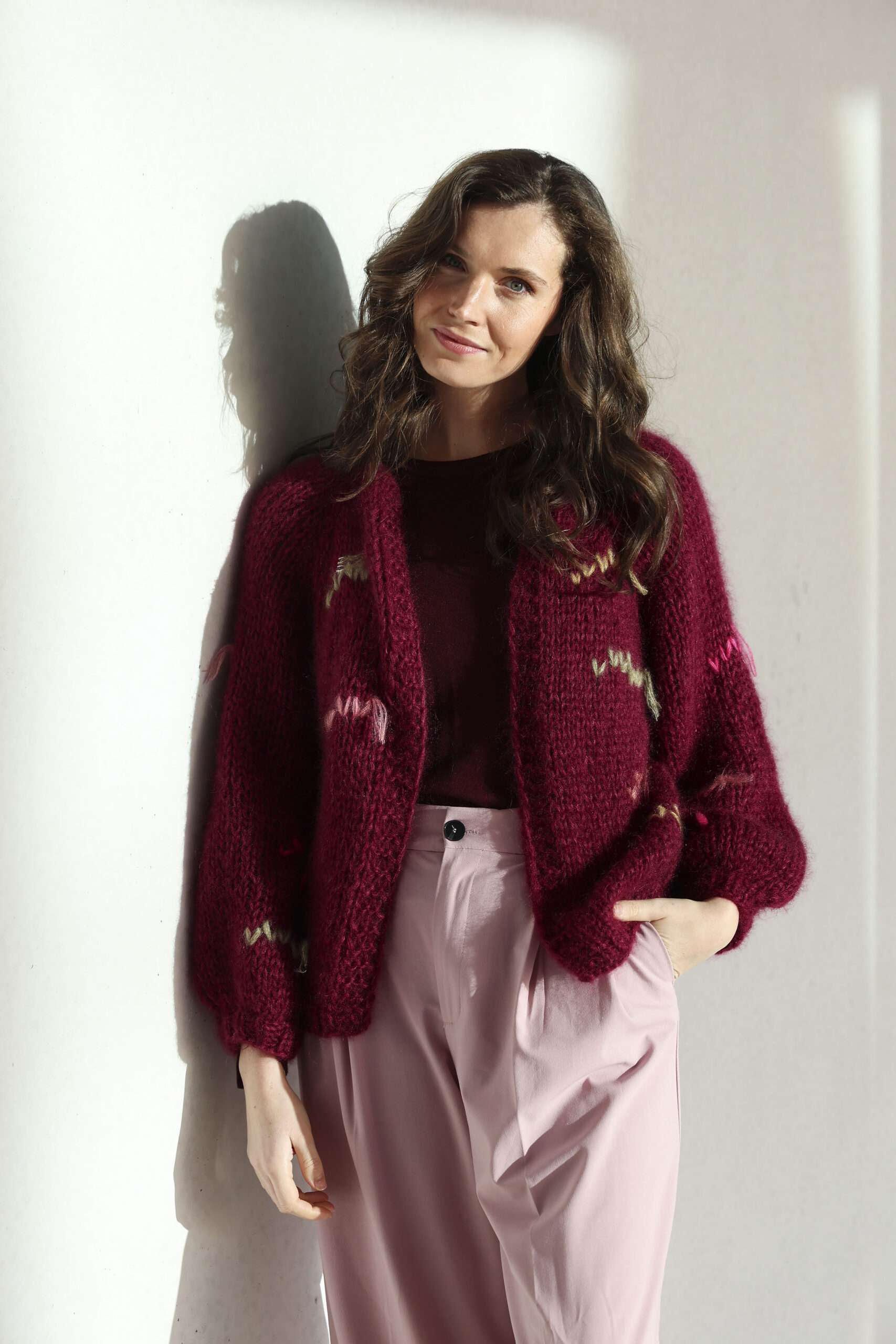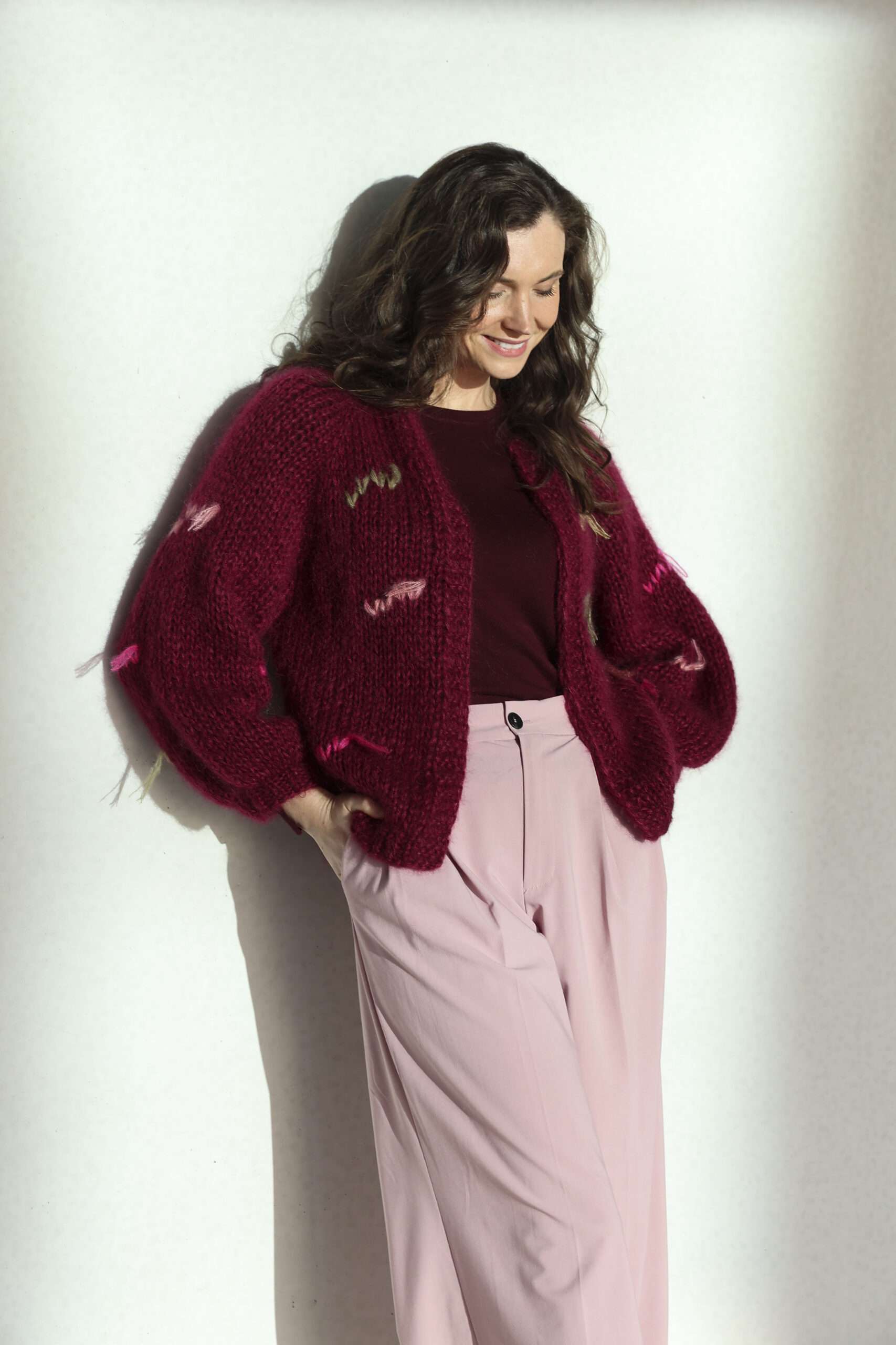 Dank seiner offenen Silhouette, der sanften Struktur und der voluminösen Ärmel wirkt das Modell gleichzeitig lässig und elegant. Die intensive Farbe setzt stilvolle Akzente und macht jedes Outfit zum Blickfang – ob über Jeans und T-Shirt oder als Kontrast zu femininen Kleidern.