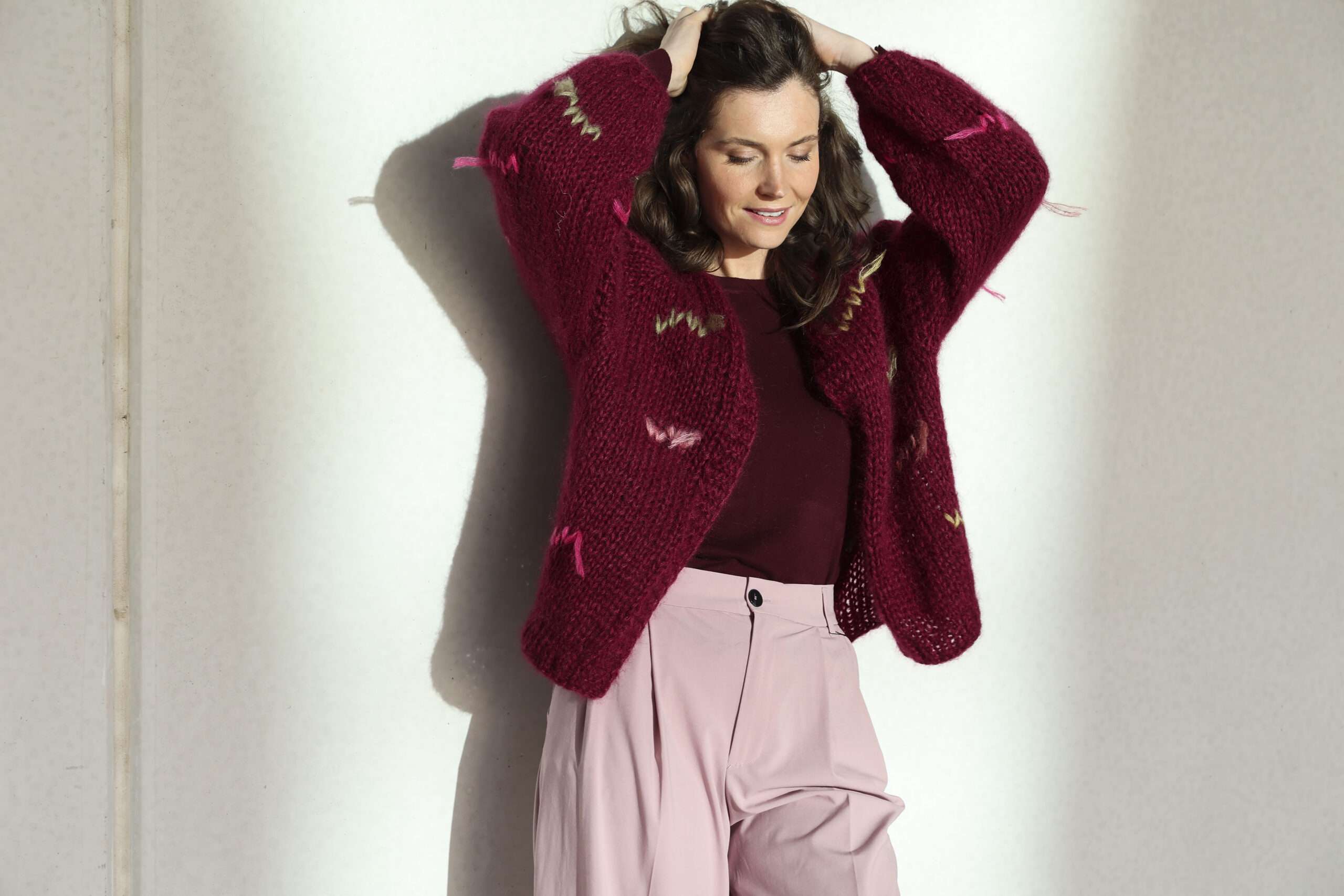 Entdecken Sie den entspannten Luxus des handgestrickten Cardigans von Atelier Basile – ein echtes Statement-Piece in leuchtendem Magenta. Der großzügig geschnittene Oversize-Cardigan vereint kunstvolle Handarbeit mit hochwertigster Mohair-Mischung und bietet ein unvergleichlich weiches, leichtes Tragegefühl.