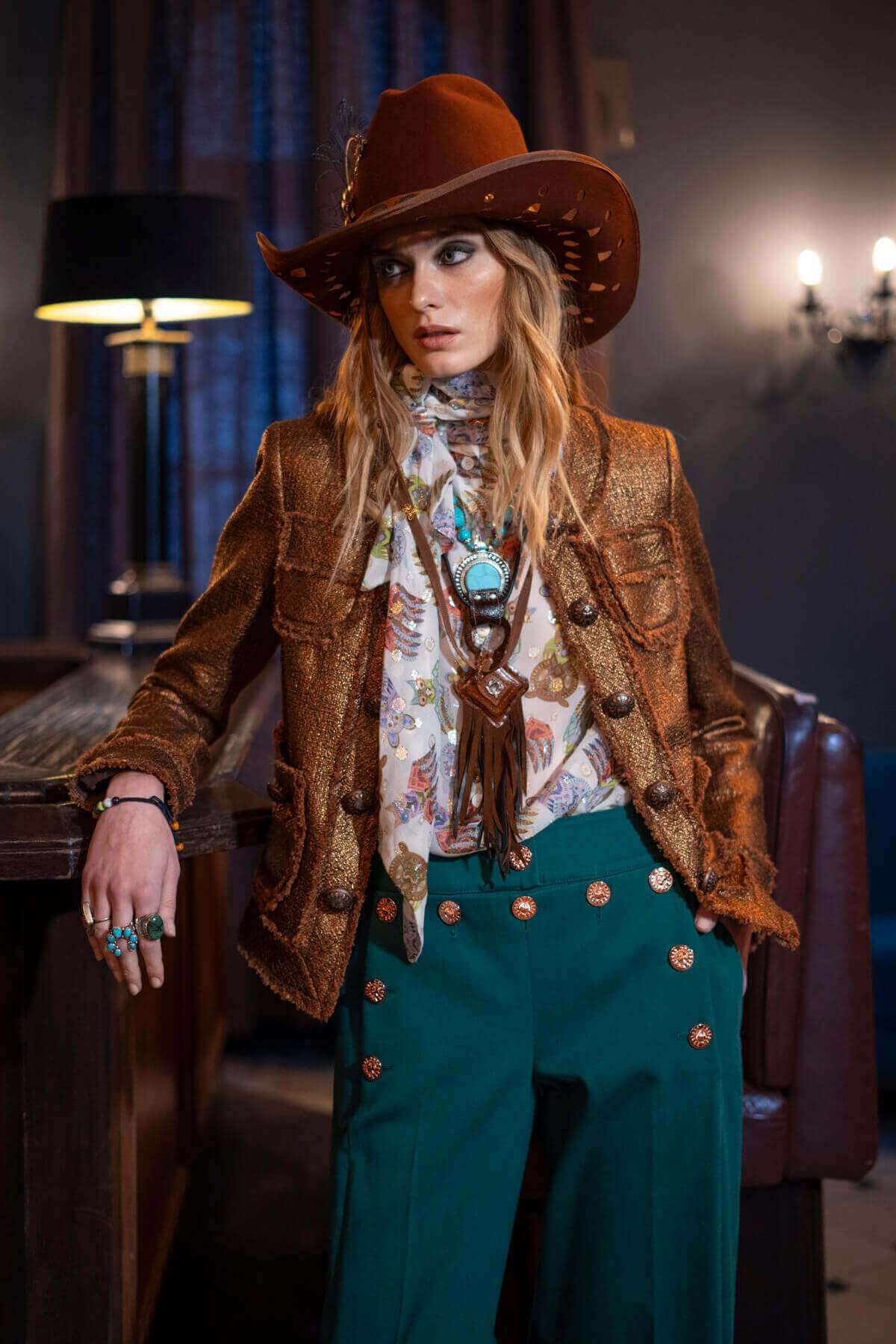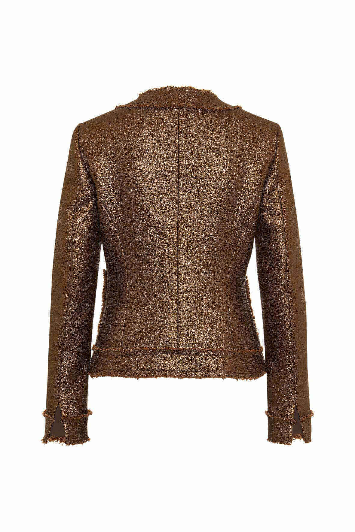 Diese Maison Common Signature Cotton Tweed Jacket wurde mit einem speziell für die Marke gefertigten, glänzenden Tweed gefertigt, der in Italien strukturiert wurde. Die bord à bord Konstruktion mit chiffongefüttertem Innenfutter sorgt für ein feminines, schmal geschnittenes Profil, das an der Hüfte endet. Stilvoll akzentuiert durch Maison Common Prägknöpfe und feine Fransenränder, lässt sich die Jacke sowohl mit Jeans als auch im Ensemble zu einem passenden Rock tragen. Ein luxuriöses Must-Have für Liebhaber von raffiniertem Design, exklusiv über Amour Fou erhältlich.