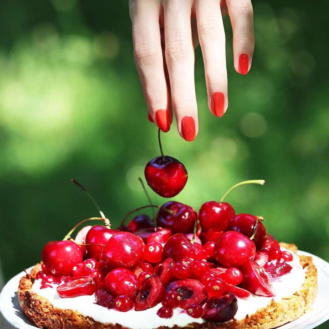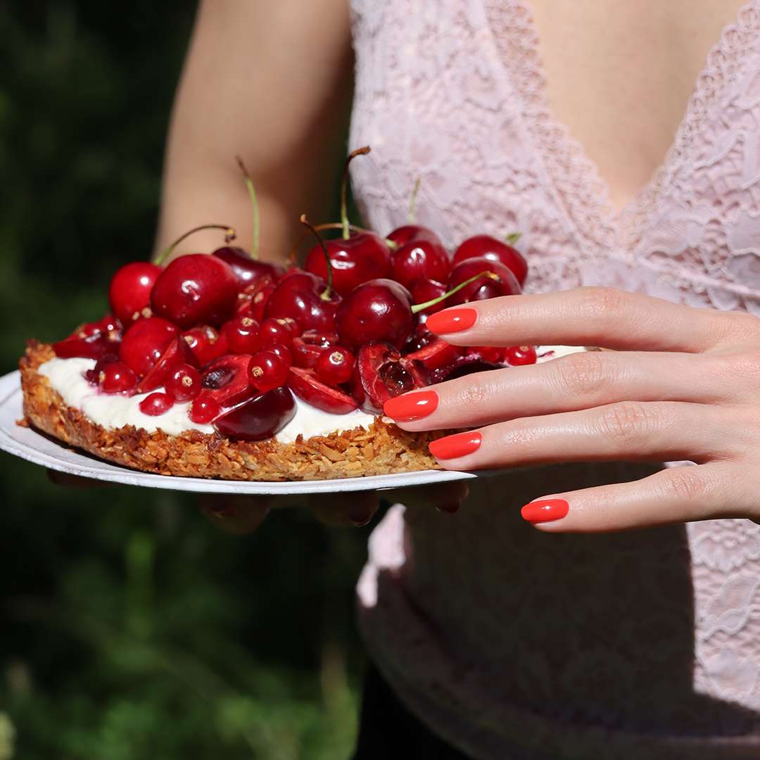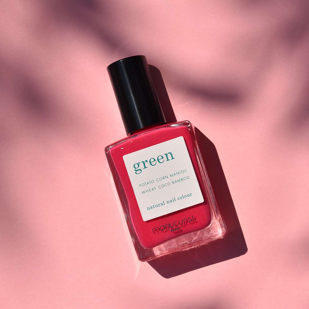 Manucurist “Red Cherry” ist Teil der Green™-Reihe – einem veganen, 9-freien Nagellacksystem mit hoher Pigmenttiefe und pflanzlichen Inhaltsstoffen.
