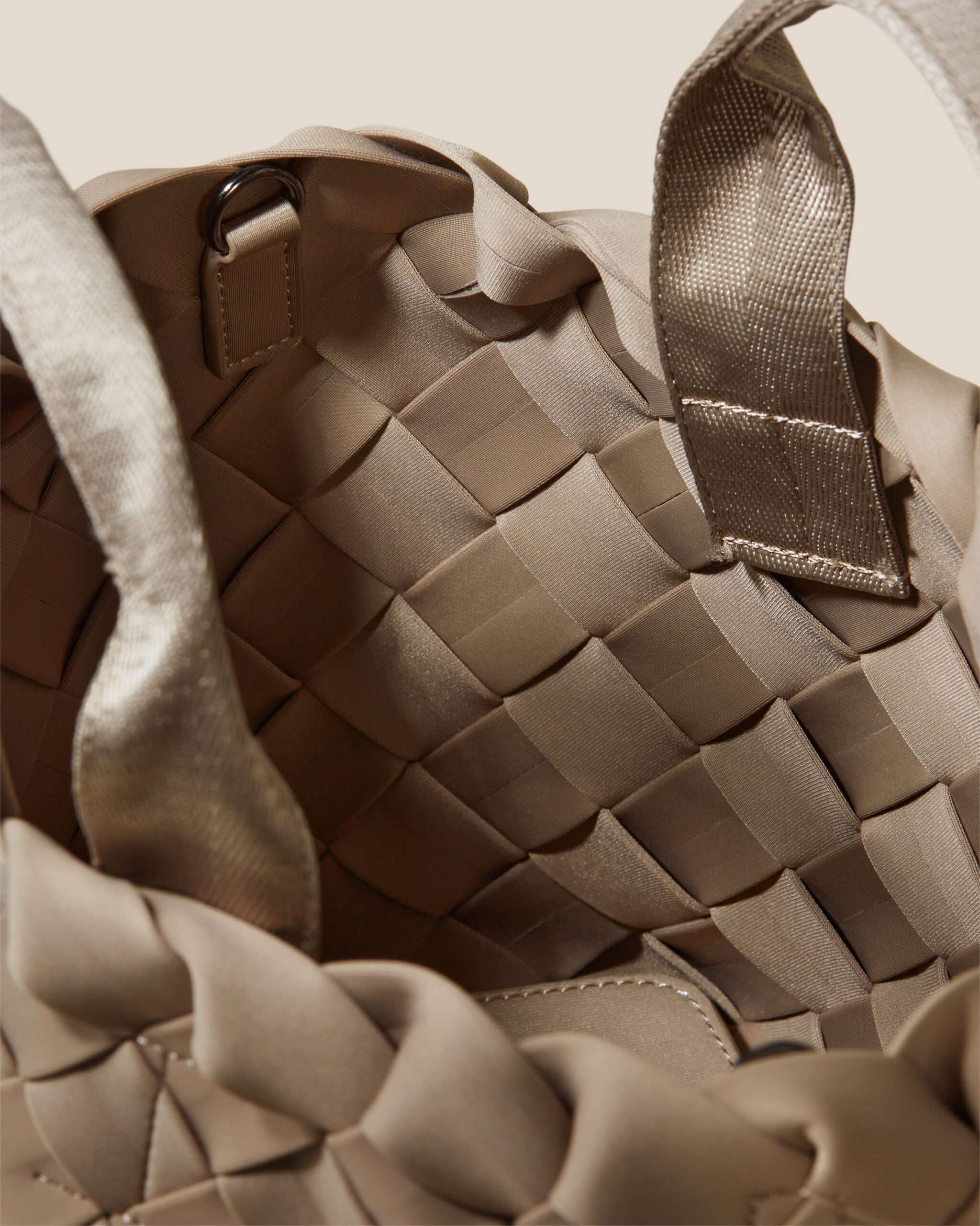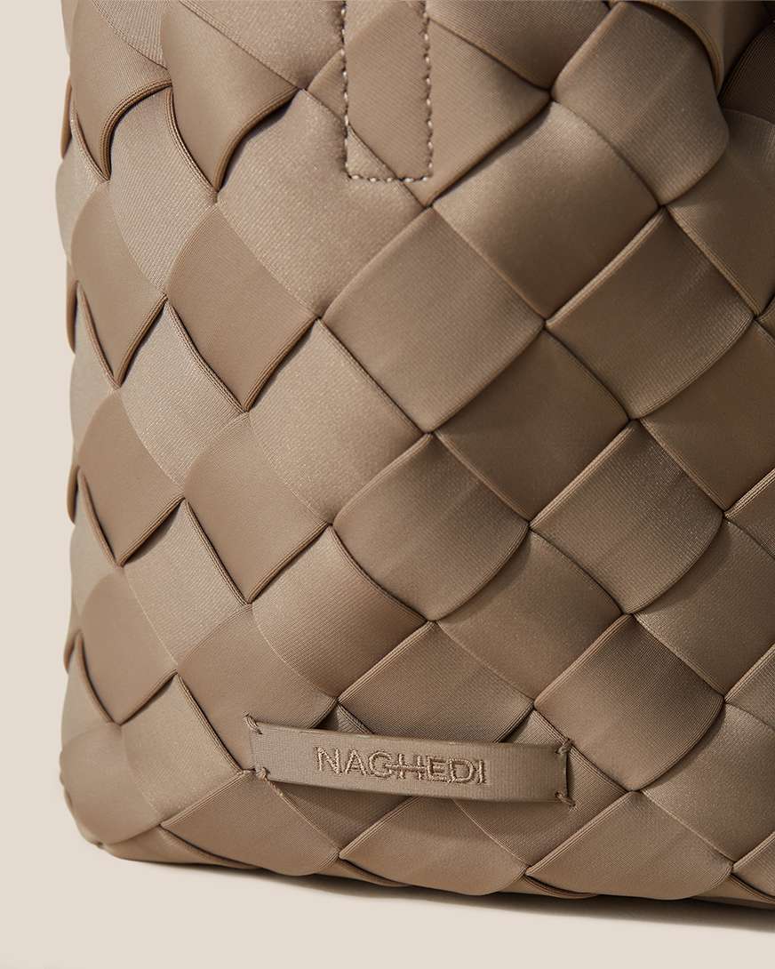 Die Tangier Small Tote von NAGHEDI im Farbton Cashmere ist eine Harmonisierung von Designästhetik und Alltagstauglichkeit. Gefertigt aus handgewebtem Neopren, überzeugt diese Tote durch eine spürbare, luxuriöse Textur bei zugleich überraschender Leichtigkeit.