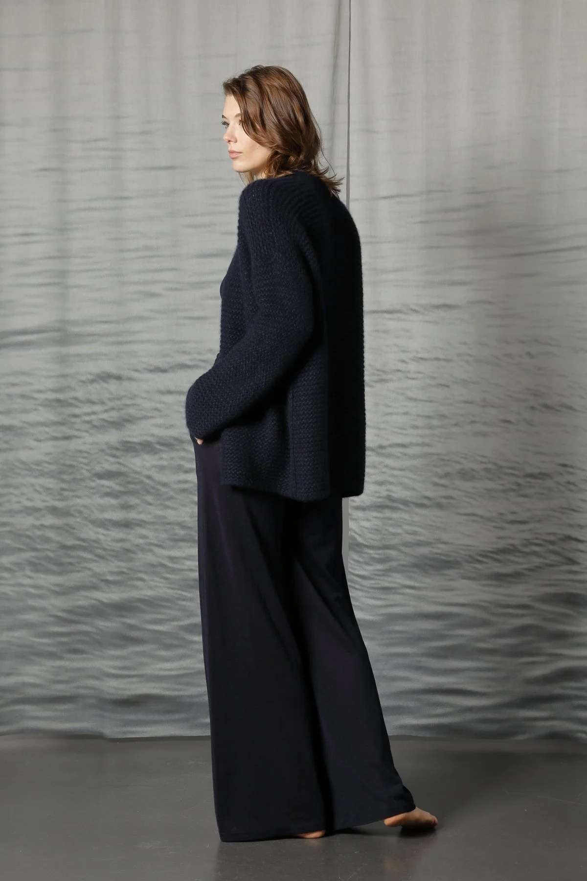 SMINFINITY kombiniert klassische Stricktechniken mit modernen Materialien. Die Fluffy Garter Jacket steht für Geborgenheit, Ruhe und Qualität – ein bewusst weiches Statement, das Komfort und Eleganz in Einklang bringt.