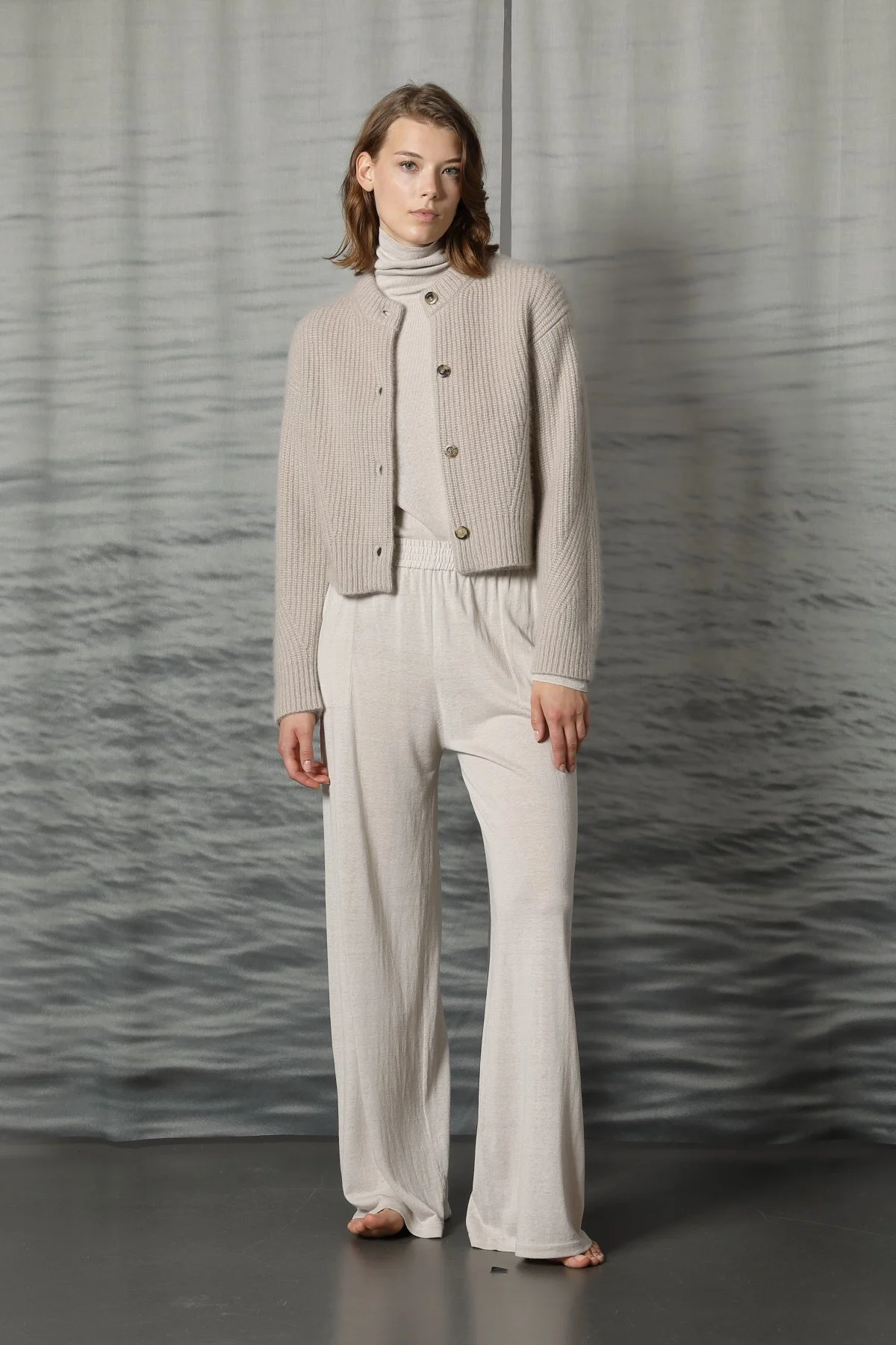 Gefertigt aus 75 % Cashmere und 25 % Seide, überzeugt die Jacke durch ein außergewöhnlich weiches, gebürstetes Garn mit flauschiger Oberfläche. Die feine Rippstruktur verleiht dem Modell Tiefe und Elastizität, während das Material leicht, wärmend und angenehm auf der Haut liegt. Ideal für stilvolles Layering über das ganze Jahr hinweg.