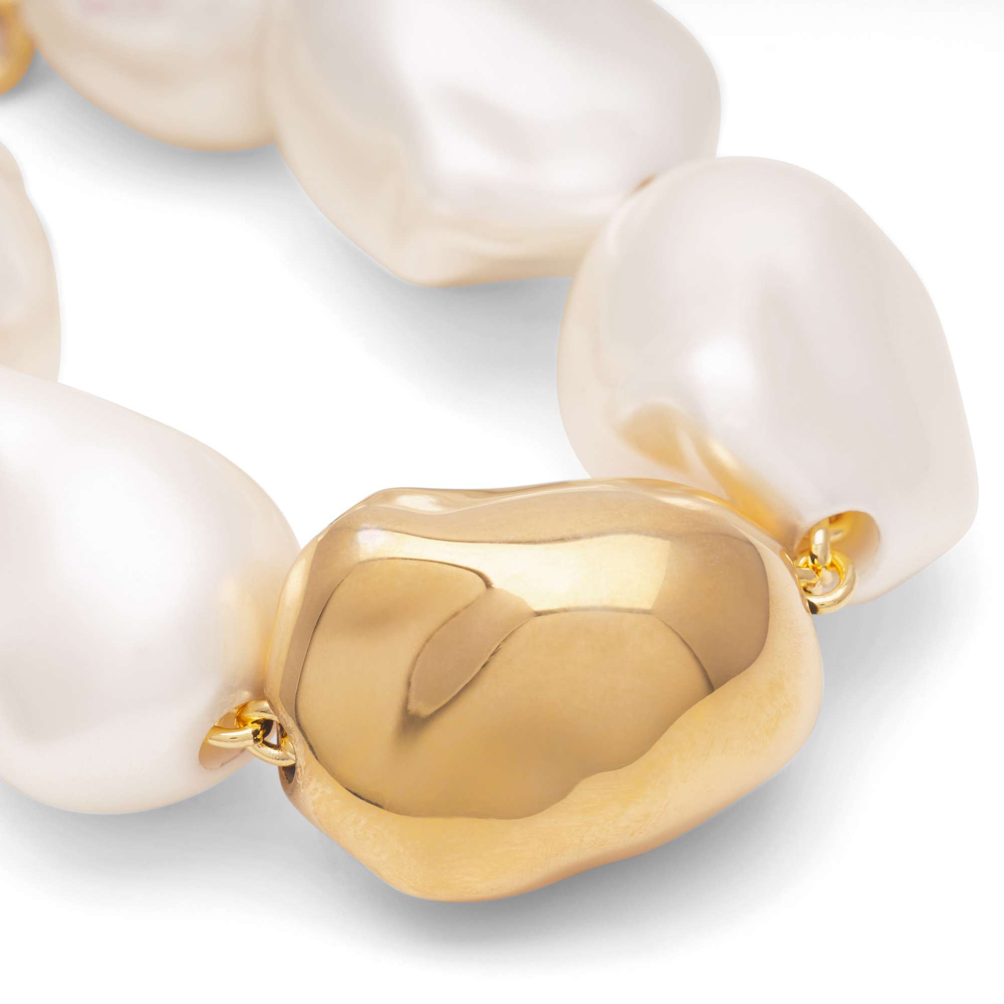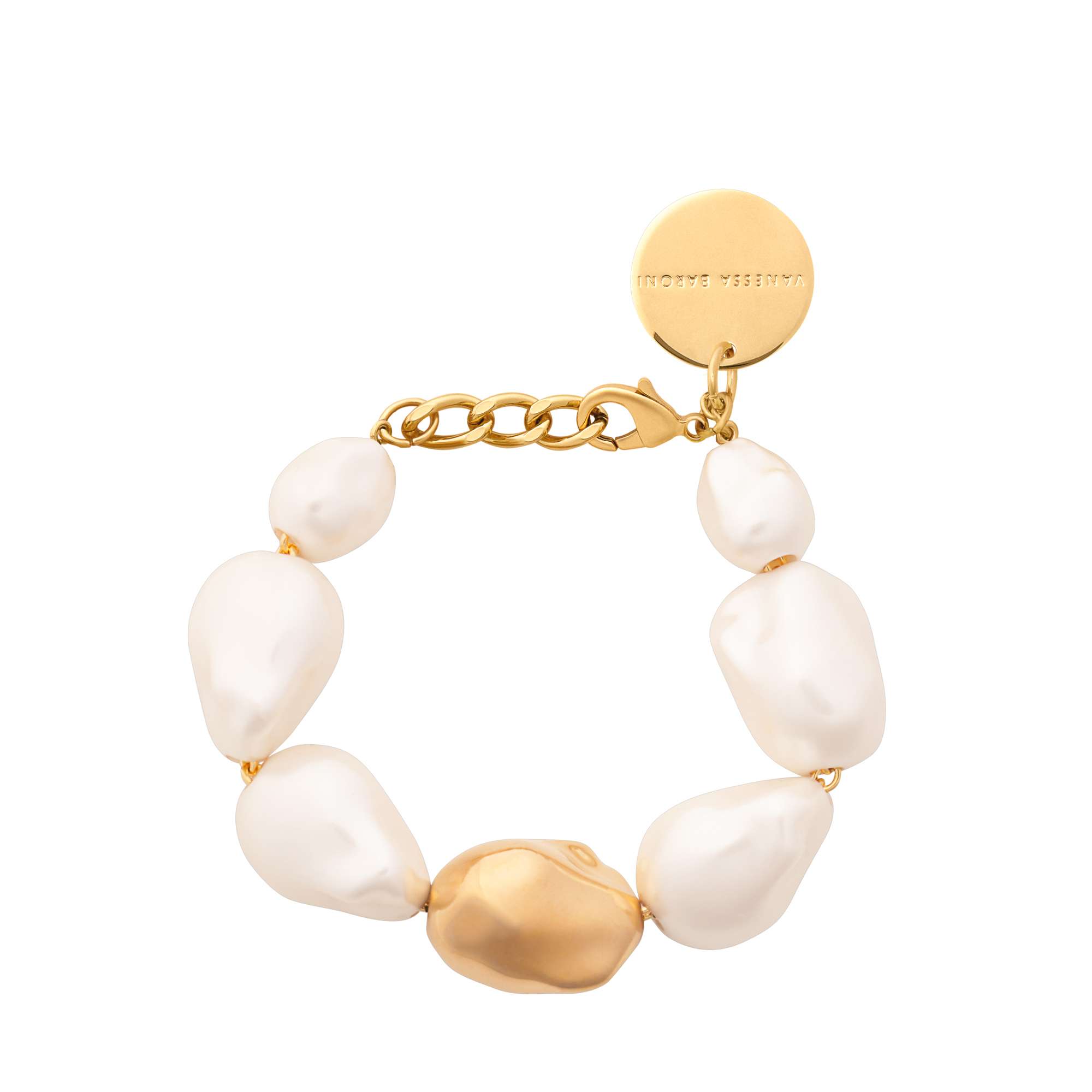 Das Big Organic Pearl Bracelet with Gold Pearl von Vanessa Baroni besticht durch seine organisch geformten Perlen, die sich elegant um das Handgelenk schmiegen und dem Armband eine natürliche, zeitlose Ausstrahlung verleihen. Das goldfarbene Perlendetail setzt einen luxuriösen Akzent und sorgt für subtile Raffinesse. Gefertigt in Italien, steht es für erstklassige Qualität und liebevolle Umsetzung. Der größenverstellbare Verschluss (21–23 cm Länge, ca. 2,3 cm Breite) bietet perfekten Sitz und macht das Armband zum stilvollen Statement.